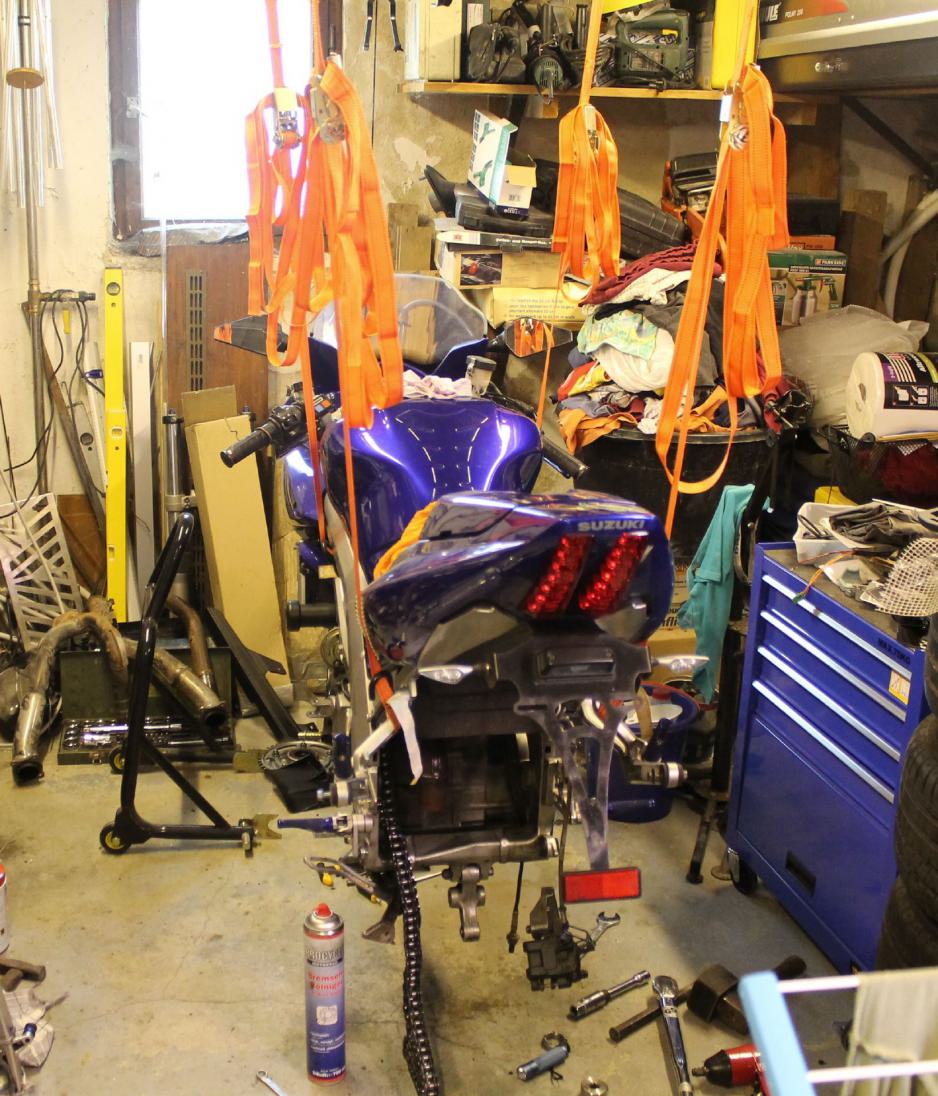 Diesmal nun endlich die Schwinge ausbauen und Lagerschau betreiben. Aber es war alles im grünen Bereich.