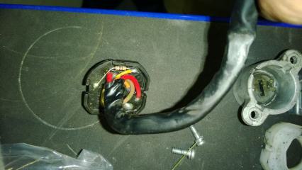 Wer sich die Fotos mal genau anschaut und die Anzahl der Drähte zählt, wird beim Betrachten des Steckverbinders sicher stutzig. An der Zündschlosskontaktplatte sind 5 Drähte angeschlossen während am Stecker nur noch vier ankommen. Die Lösung liegt innerhalb des Kabelbaums. Dort wird nämlich mit rot getrickst. Und dieser "Trick" ist wohl auch die Ausfallursache des grünen Steckers.