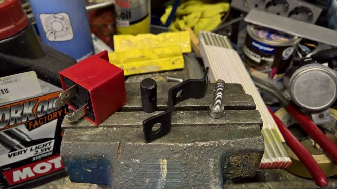 Da hier wirklich nicht viel Raum zwischen Hupe und Rahmen ist, und der Regler ja auch befestigt werden muss, musste ich mir etwas einfallen lassen. Es war schlicht nicht möglich mit den wenigen Gewindegängen der vorderen Reglerschraube die Hutmutter der Reglerbefestigung aufzudrehen. Da gingen einige Flüche aufwärts.