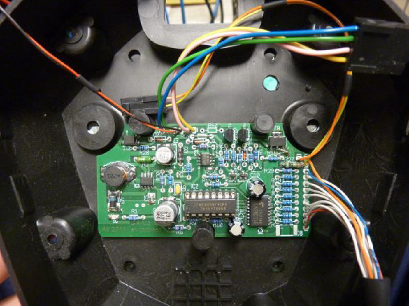 In den Bildern kann man nun sehen, wie die GA-V3 (hier noch der Prototyp) eingebaut wird. Die Platine wird mittels Klebepads an der Bodenschale angeklebt. Die Bilder zeigen, wie man die Anschlussdrähte der Ziffer sauber verlegt.